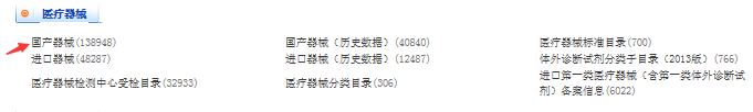 3、頁面分類中有醫(yī)療器械分類其中分為國產(chǎn)醫(yī)療器械和進(jìn)口醫(yī)療器械等,點(diǎn)擊進(jìn)入對(duì)應(yīng)的分類輸入信息即可查詢。