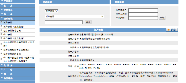 5.醫(yī)療器械注冊證書由國家食品藥品監(jiān)督管理局統(tǒng)一印制,相應(yīng)內(nèi)容由審批注冊的(食品)藥品監(jiān)督管理部門填寫,查詢結(jié)果如下: